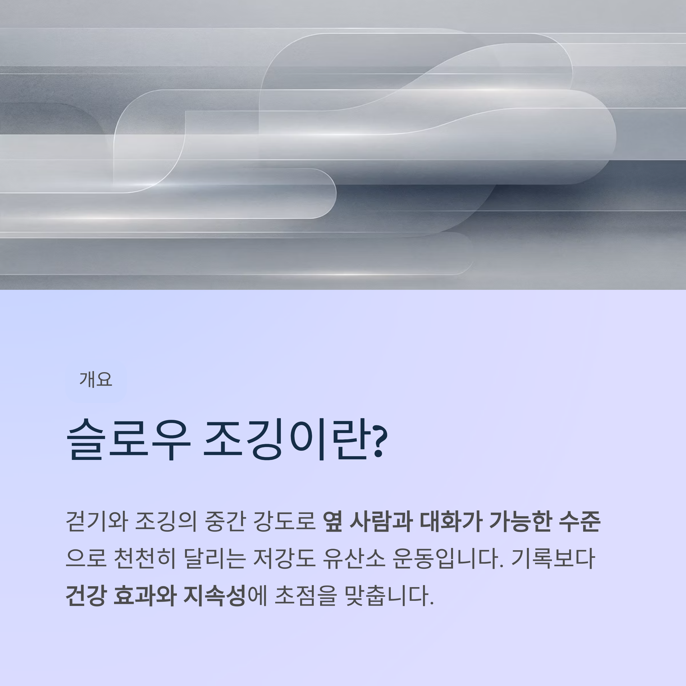 운동을 시작하려고 마음먹어도 막상 달리기는 부담스럽고, 걷기만으로는 운동 효과가 아쉽다고 느끼는 분들이 많습니다. 이럴 때 주목받는 운동이 바로 슬로우 조깅입니다.