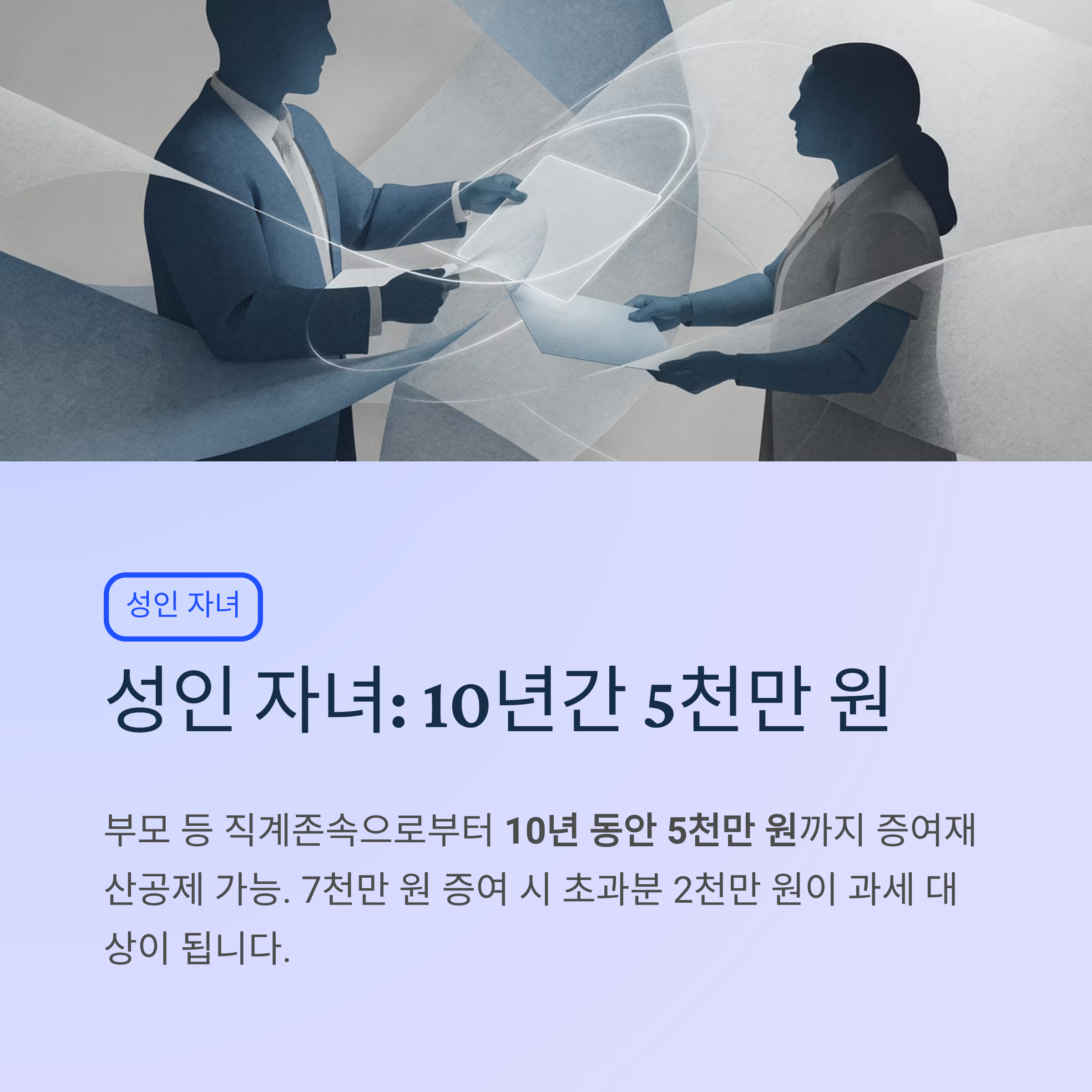 - 성인 자녀: 10년 합산 5천만 원