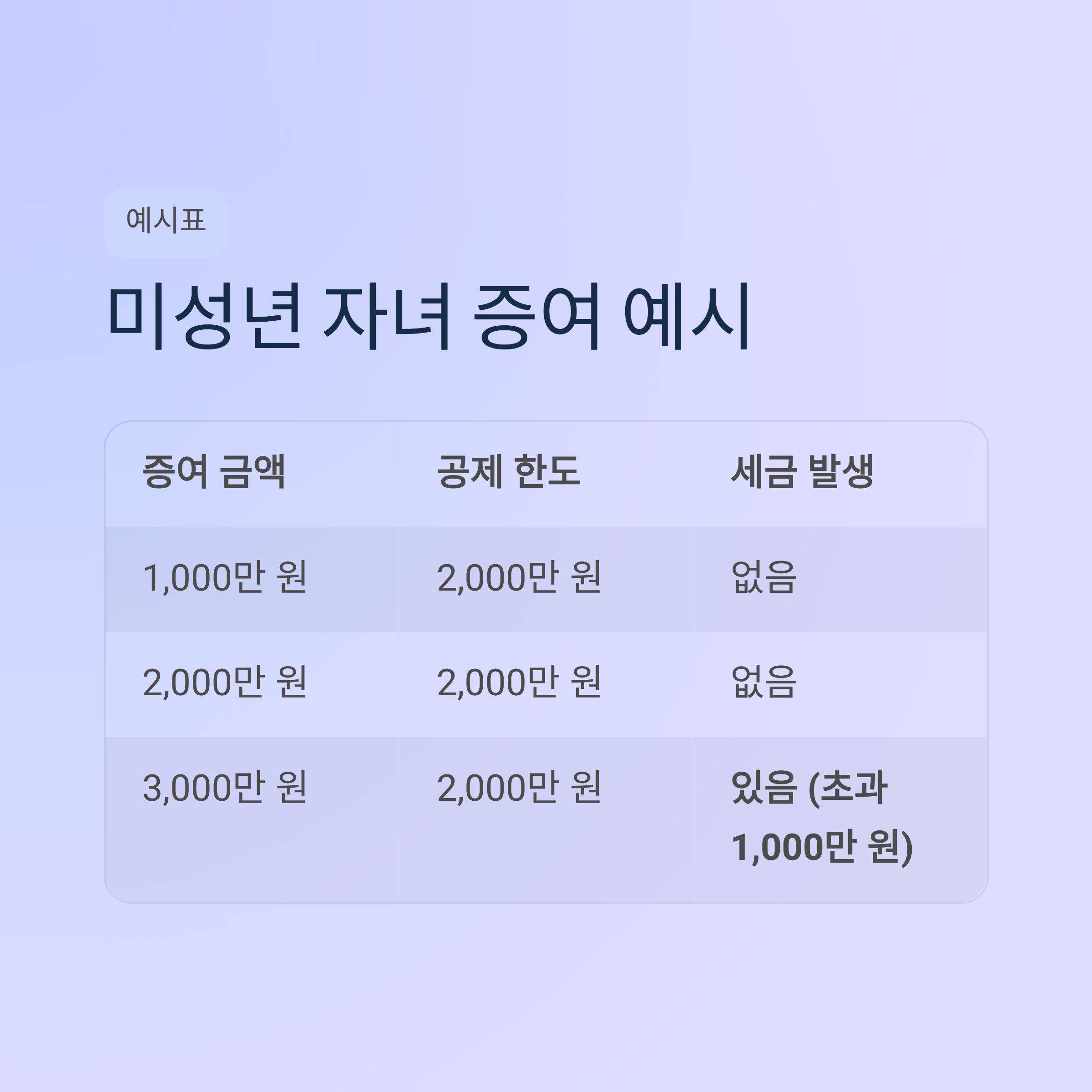 미성년 자녀 증여세 면제 한도액