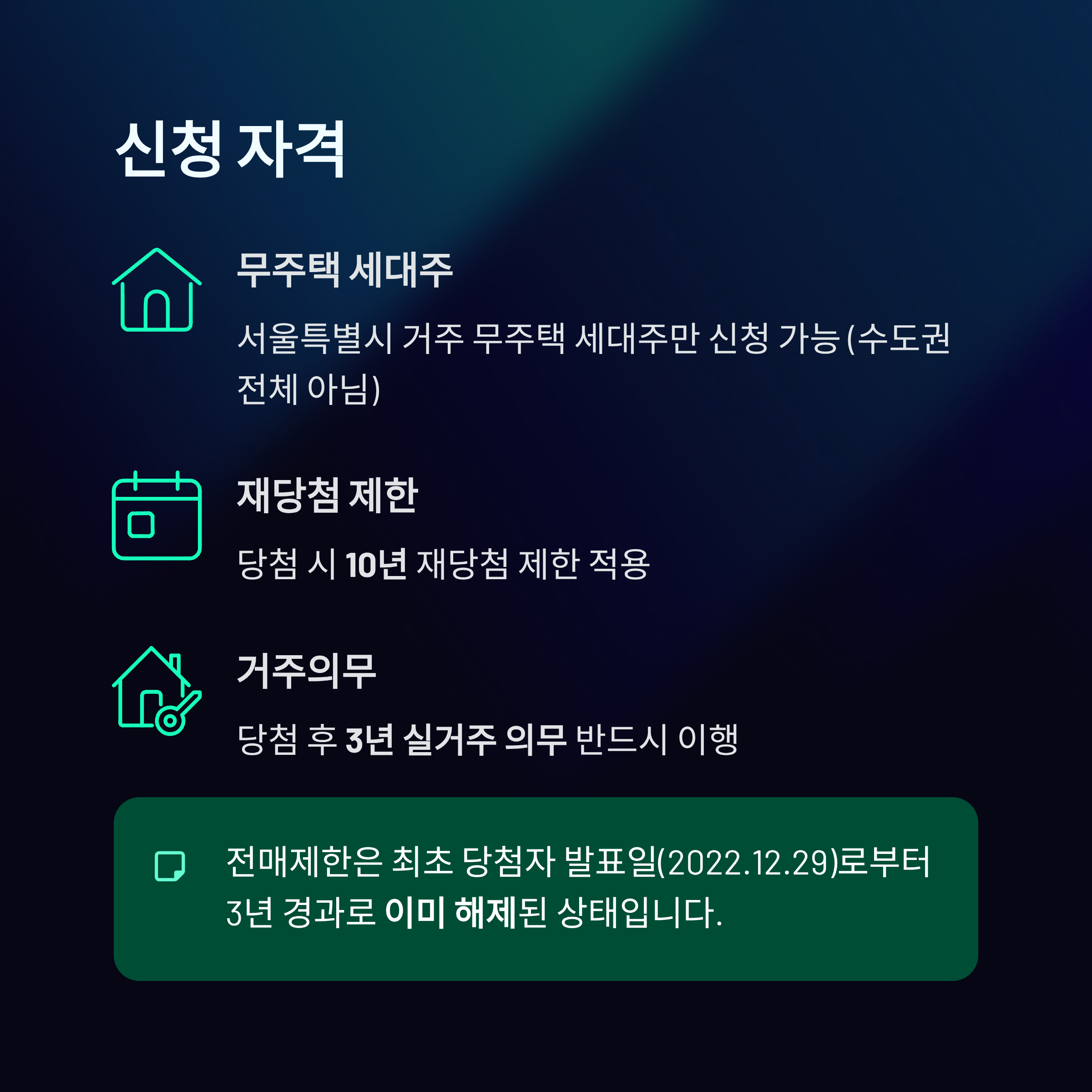 보도 기준으로 서울특별시 거주 무주택 세대주가 주요 자격입니다.