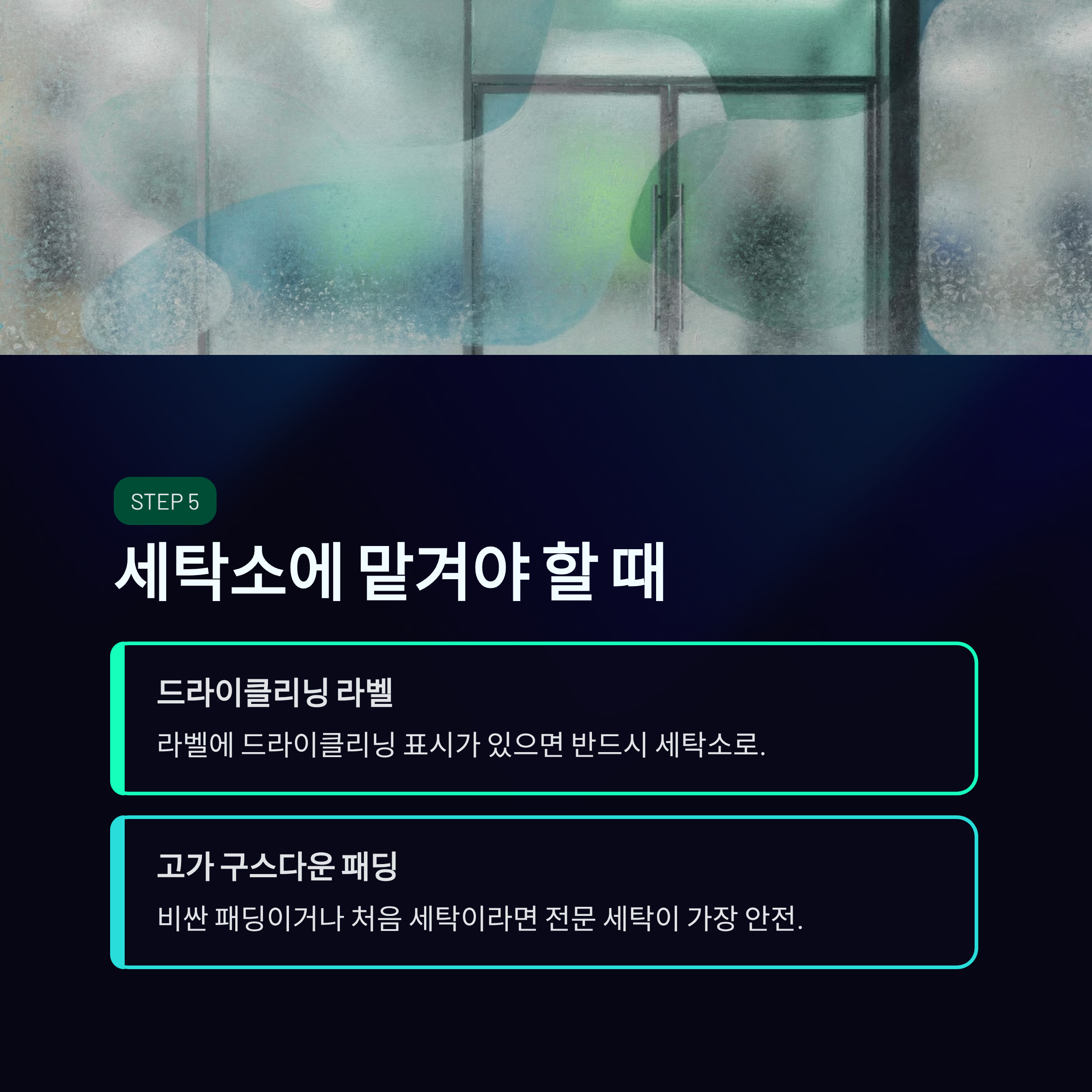 - 비싼 고가 구스다운 패딩이거나, 처음 세탁이라 부담스러운 경우는