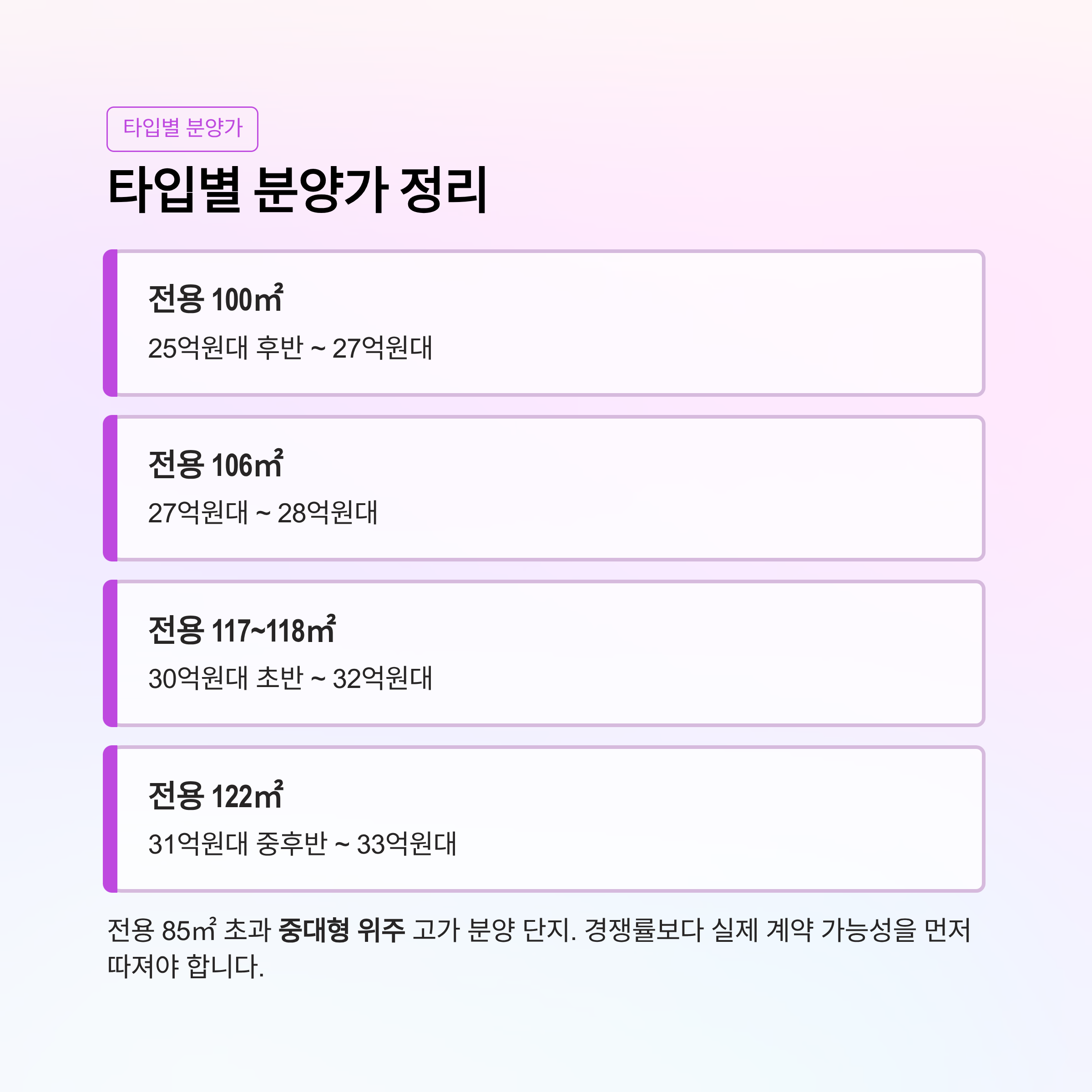 즉, 소형 위주 분양이 아니라 중대형 중심 고가 분양 단지라는 점이 특징입니다.