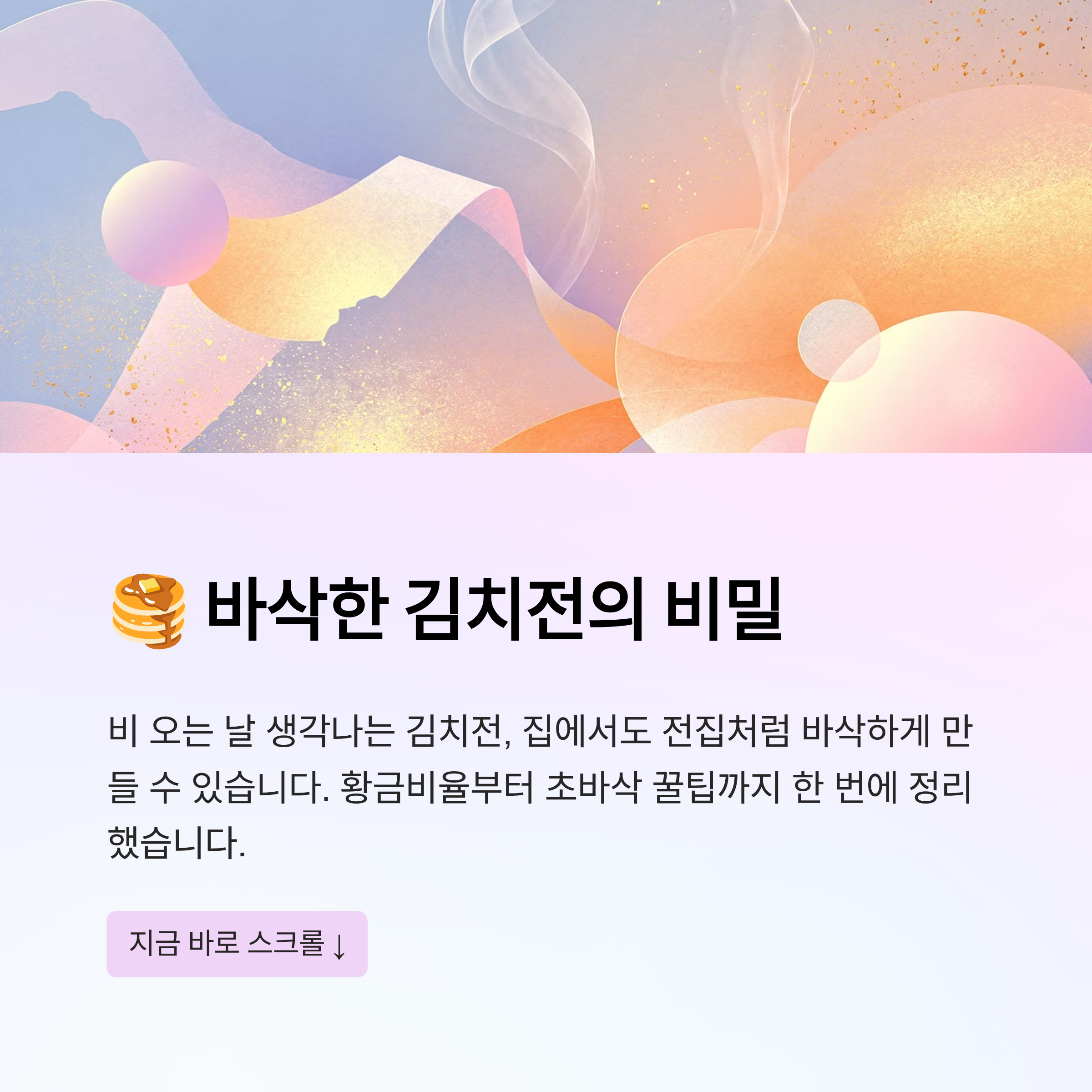 오늘은 김치전 바삭하게 만드는 방법을 중심으로, 실패 없는 황금비율, 반죽법, 굽는 순서, 그리고 라이스페이퍼를 활용한 초바삭 팁까지 한 번에 정리해드리겠습니다.