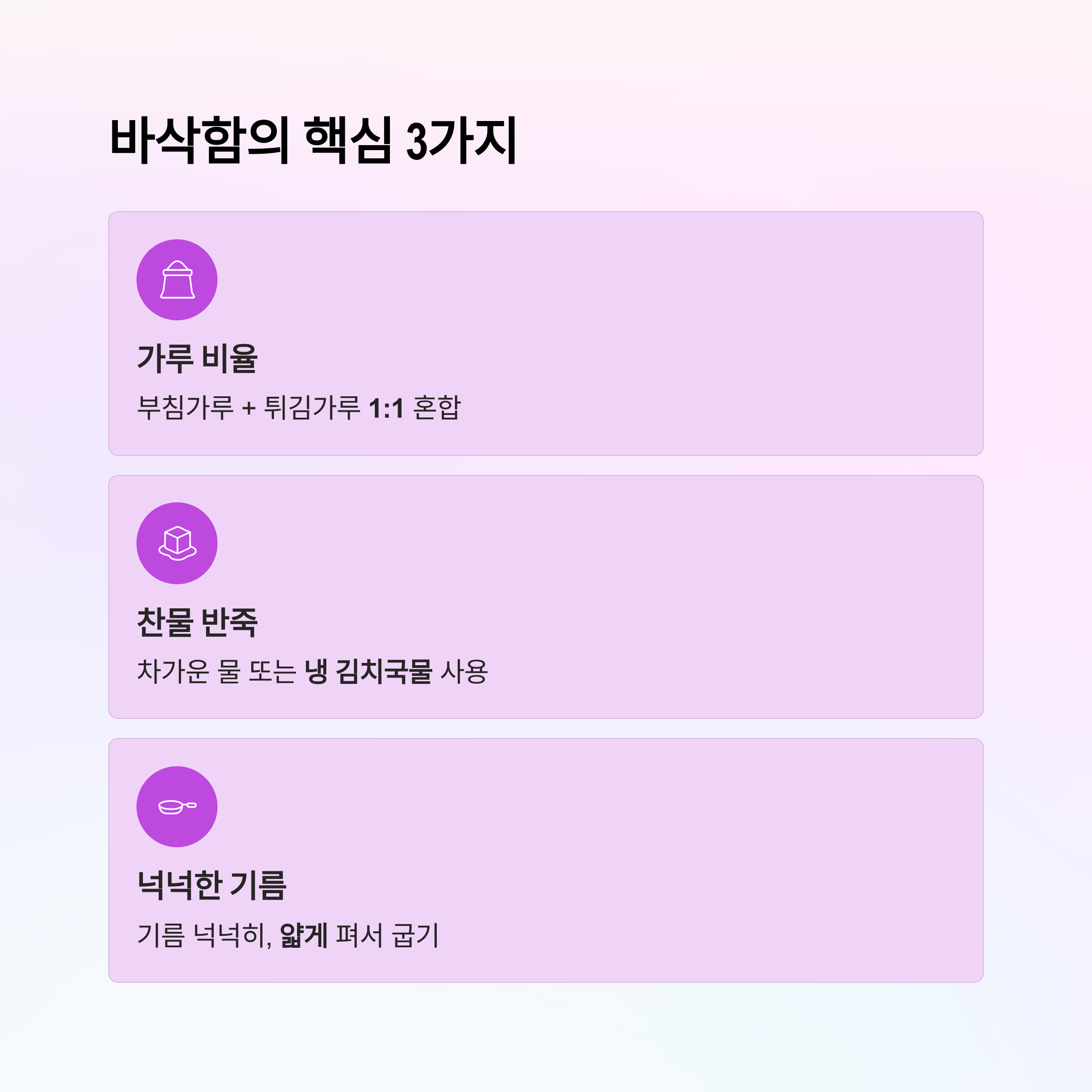 김치전을 바삭하게 만드는 핵심은 생각보다 단순합니다.
