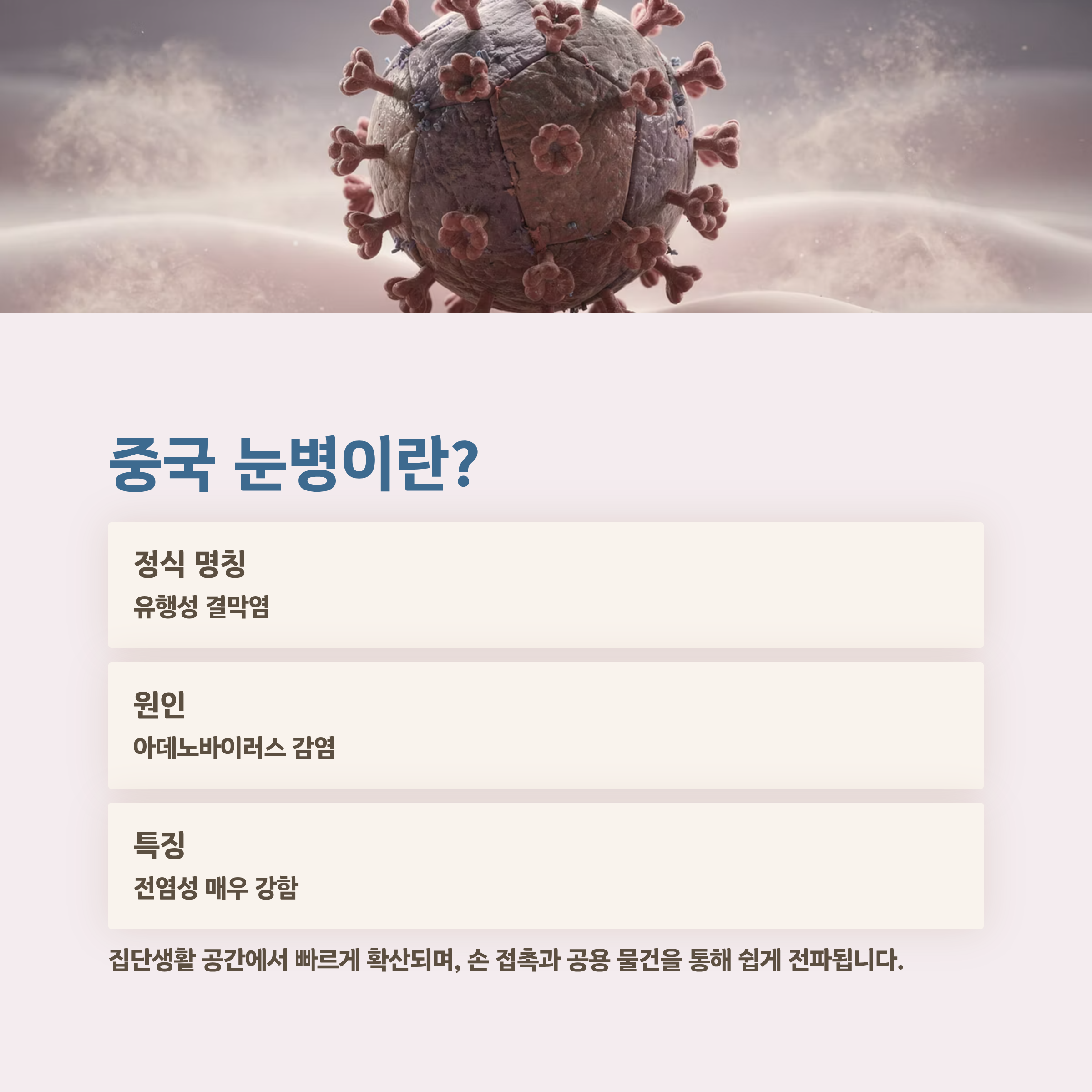 - 중국 눈병: 아데노바이러스 감염