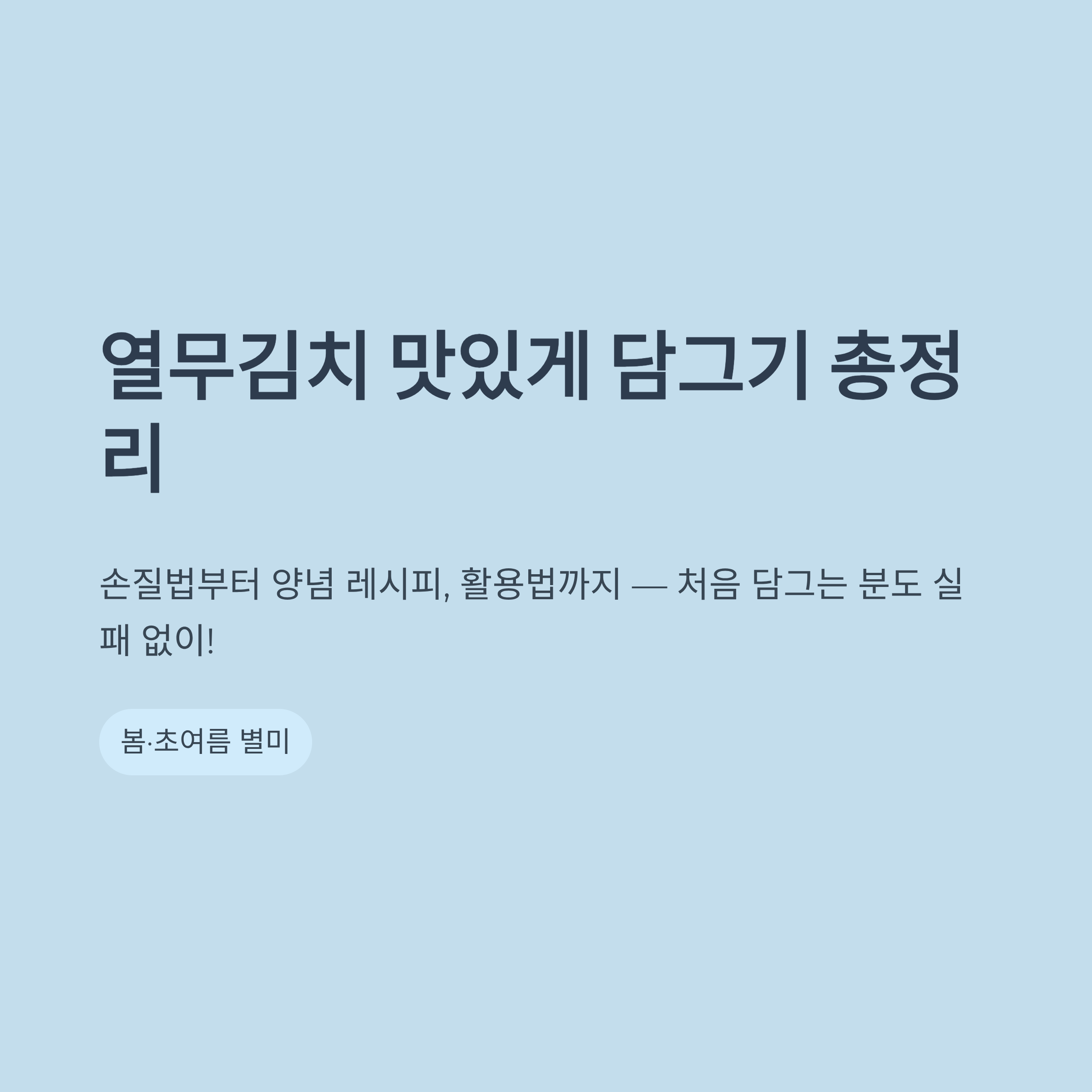 오늘 알려드린 방법대로 담그면 아삭하면서도 시원한 맛이 살아 있는 열무김치를 집에서도 충분히 만들 수 있습니다.