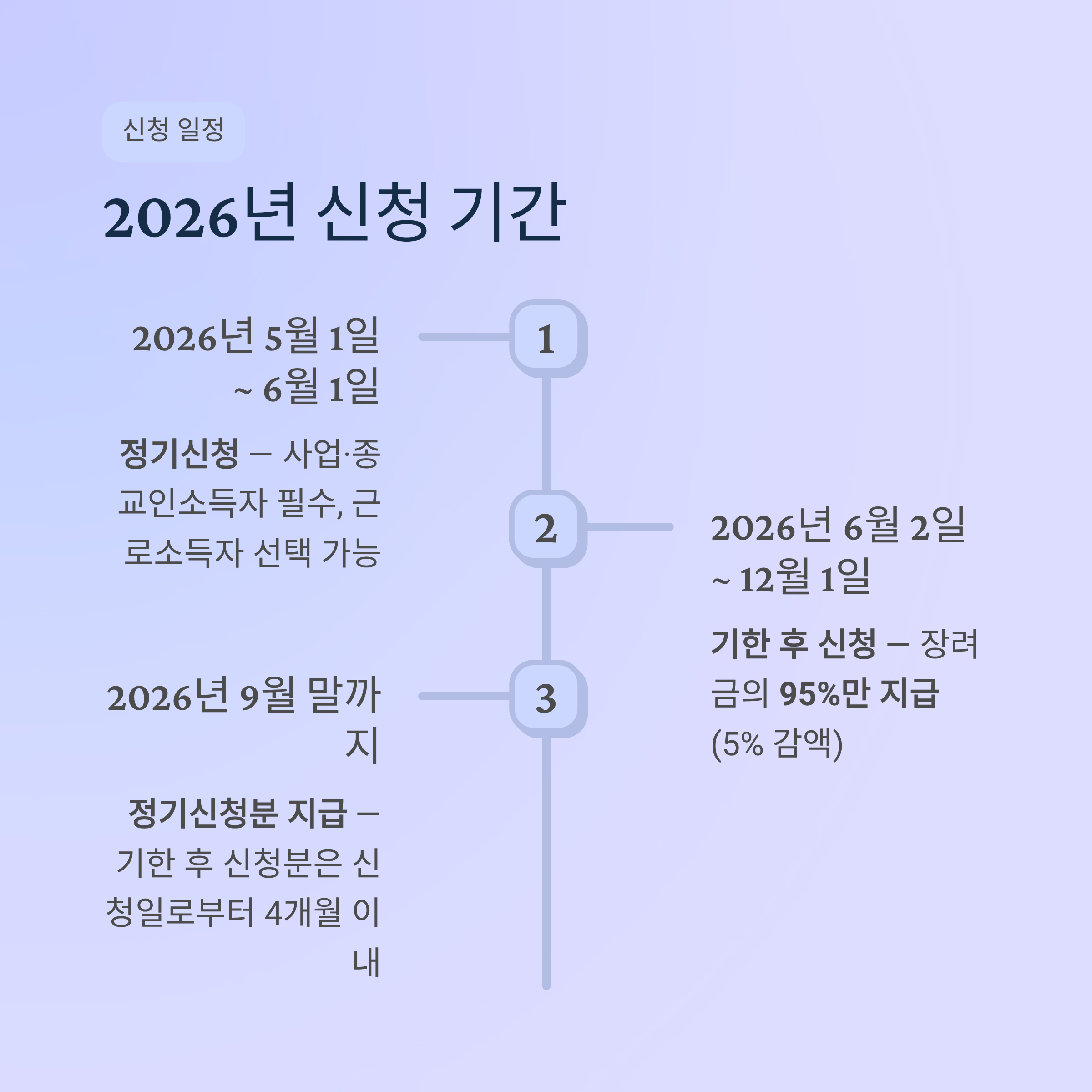 2026년 5월 1일~6월 1일입니다. 기한 후 신청은 2026년 6월 2일~12월 1일입니다.