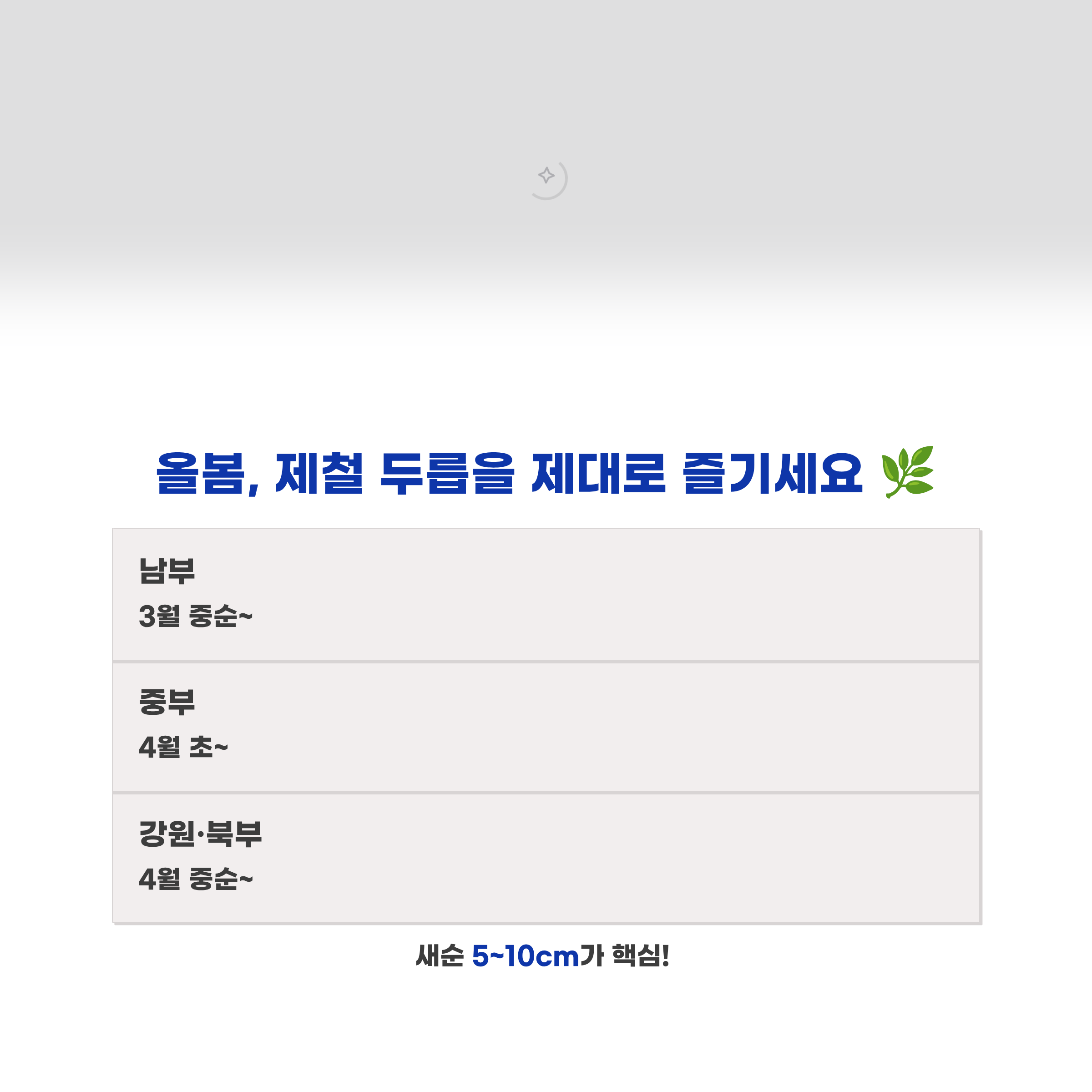 아닙니다. 남부지방은 보통 3월 중순부터 시작되고, 중부는 4월 초~중순, 강원·북부는 4월 중순~5월 초가 일반적입니다.