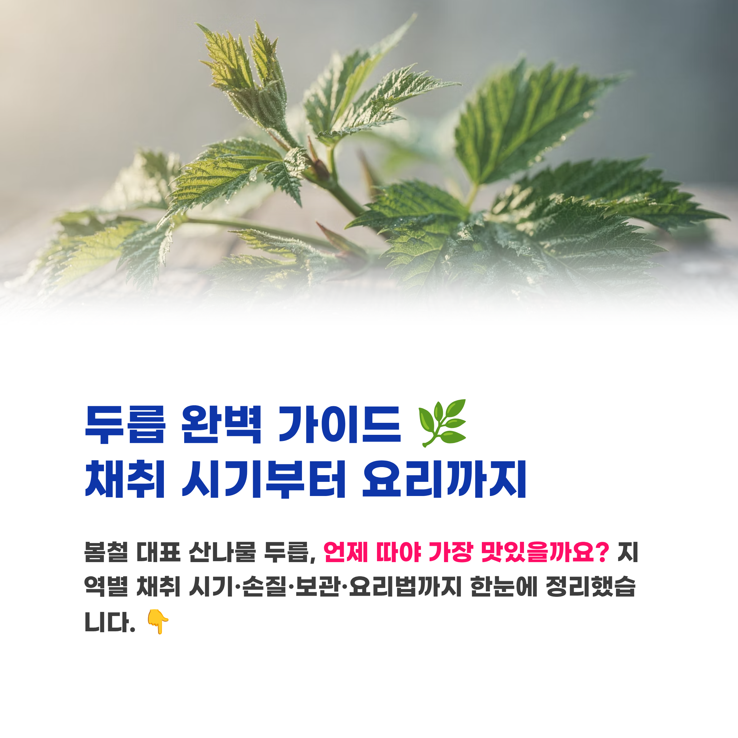 - 새순이 5~10cm 정도일 때 가장 부드럽고 향이 좋음