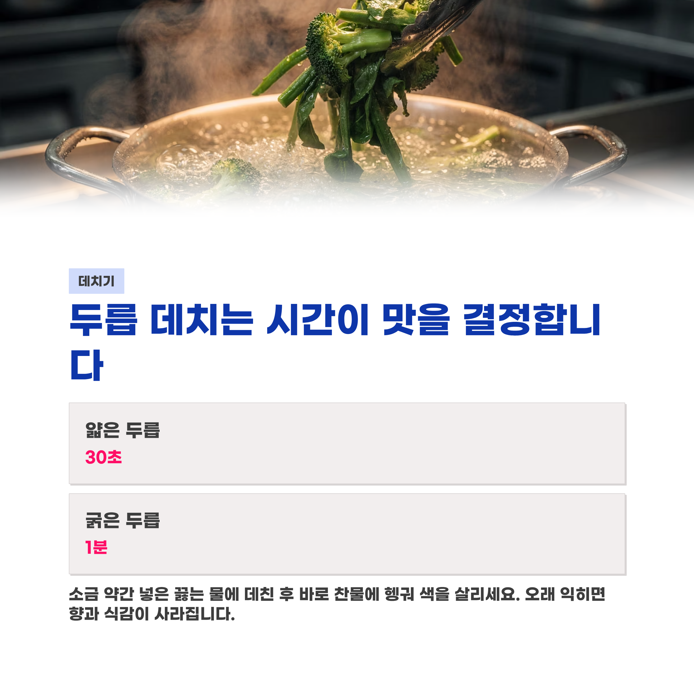굵기별 데치는 시간