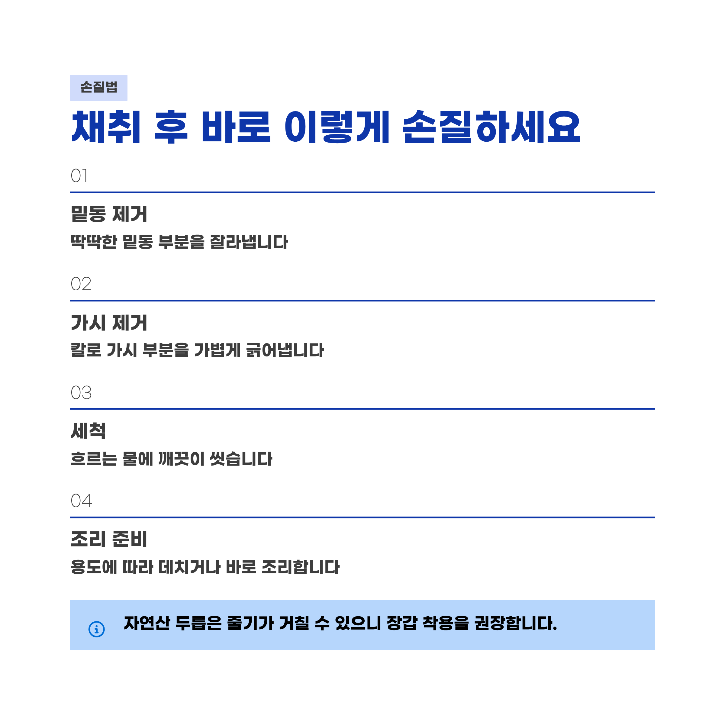 - 밑동의 딱딱한 부분을 잘라냅니다.