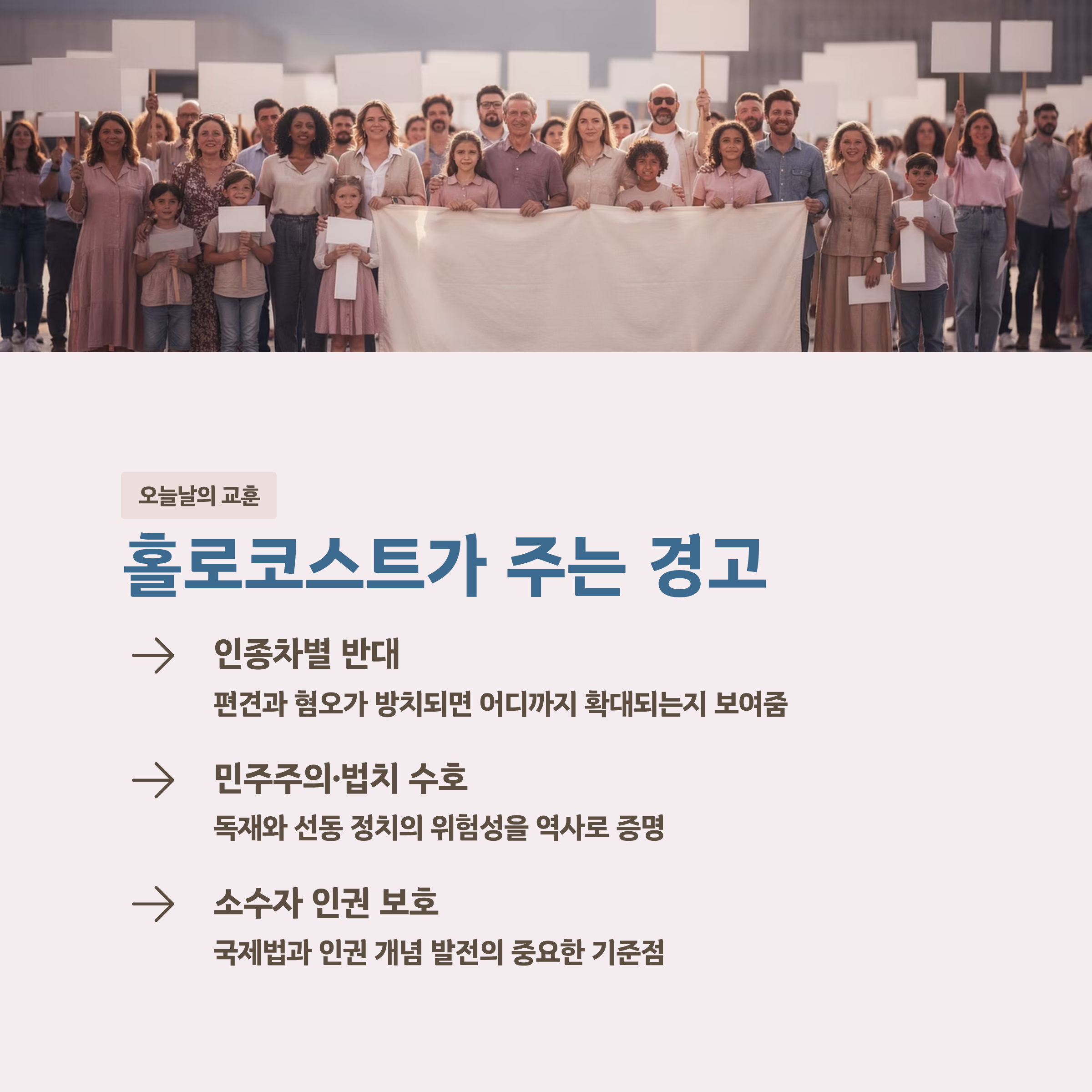 차별과 혐오, 선동 정치가 얼마나 위험한 결과를 낳을 수 있는지 보여주기 때문입니다. 현재의 민주주의와 인권을 지키기 위해서도 꼭 기억해야 합니다.